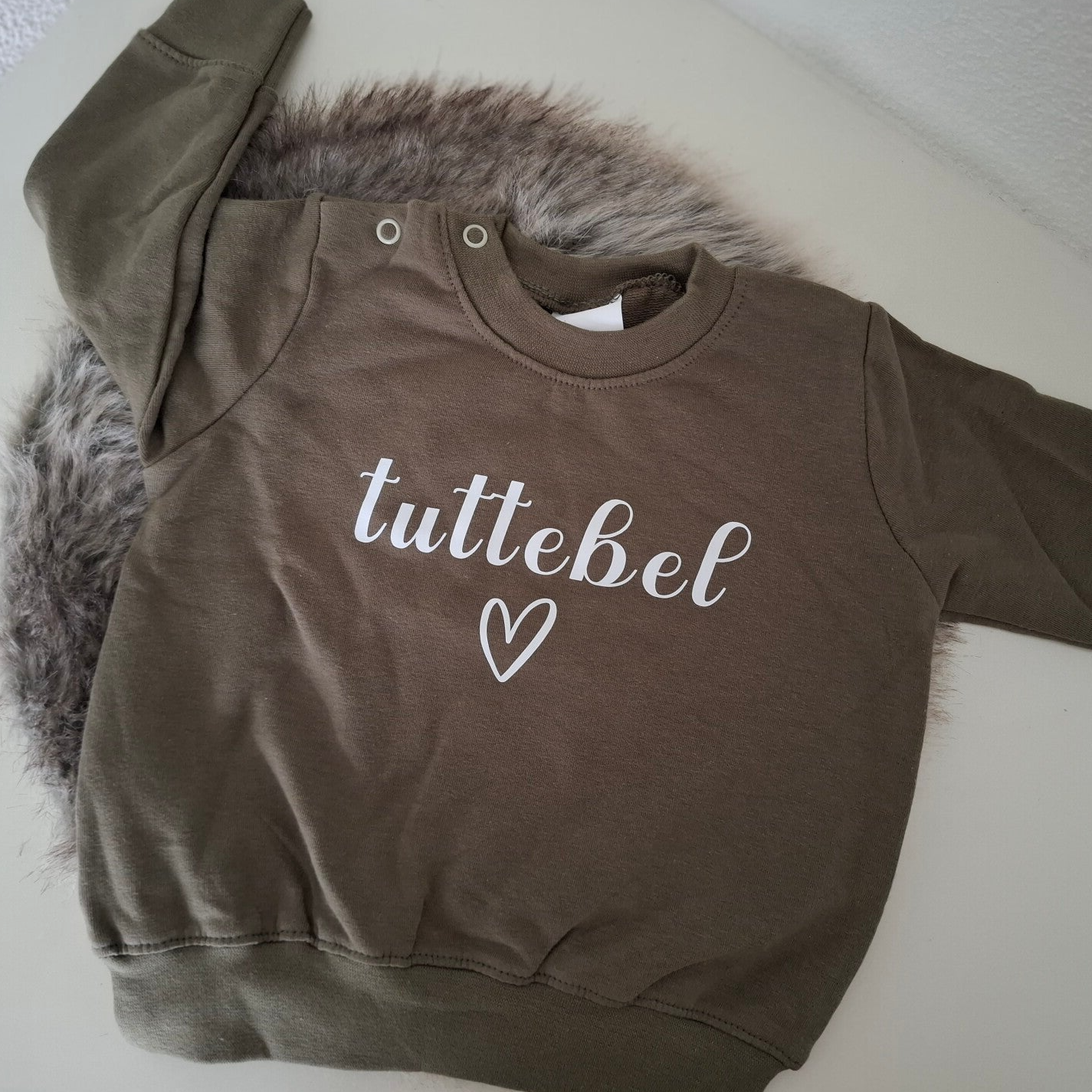 Deze sweater wordt bedrukt met de opdruk 'boefje'
